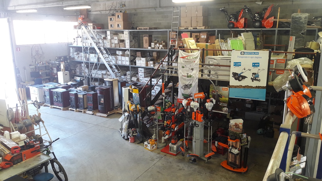 • il secondo adibito a magazzino con la funzione di esposizione di stufe, cucine, caminetti, caminetti a bioetanolo, arredo da giardino, macchine agricole, motoseghe, decespugliatori, arredamento da lavoro ed allestimento officina, ecc...